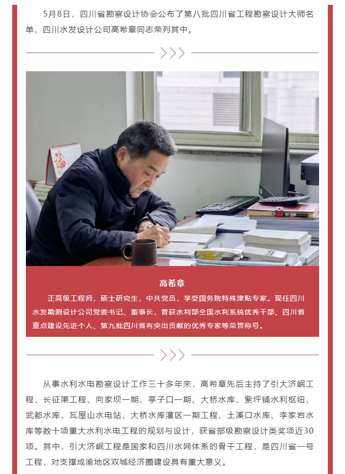 喜報!設(shè)計公司高希章同志榮獲“四川省工程勘察設(shè)計大師”稱號